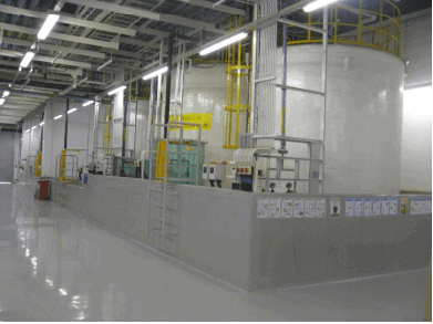 37 tanques de almacenamiento de aguas, de los cuales cinco son tanques de almacenamiento de aguas residuales que contienen cobre, y el resto de tanques de almacenamiento de agua ultrapura.